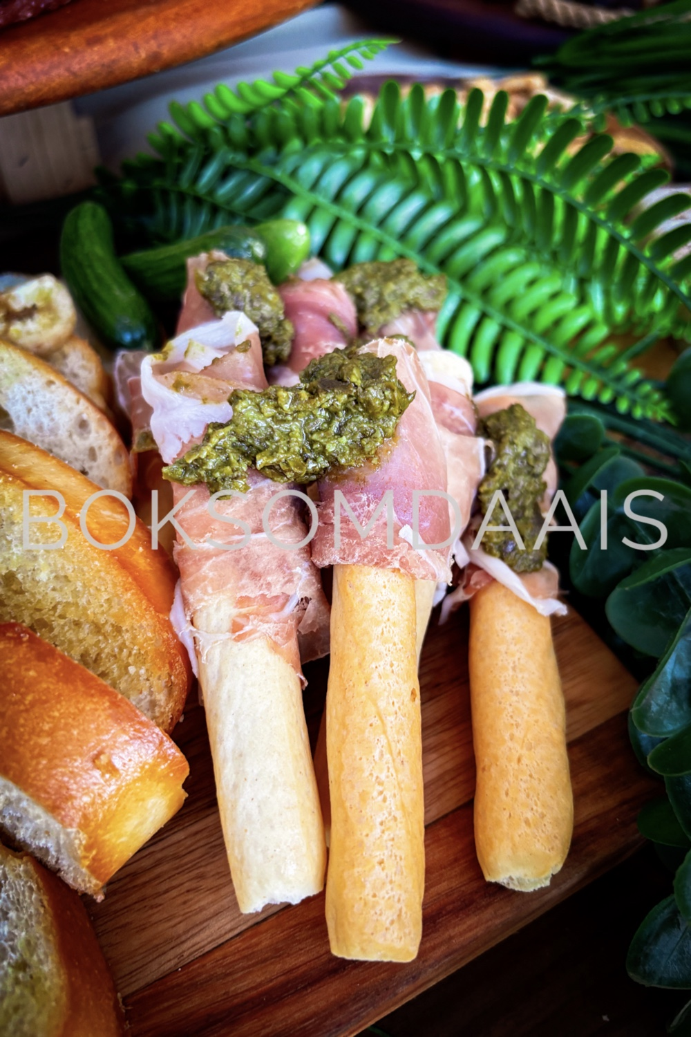 Parma Ham Bread Sticks with Basil Pesto Drizzle